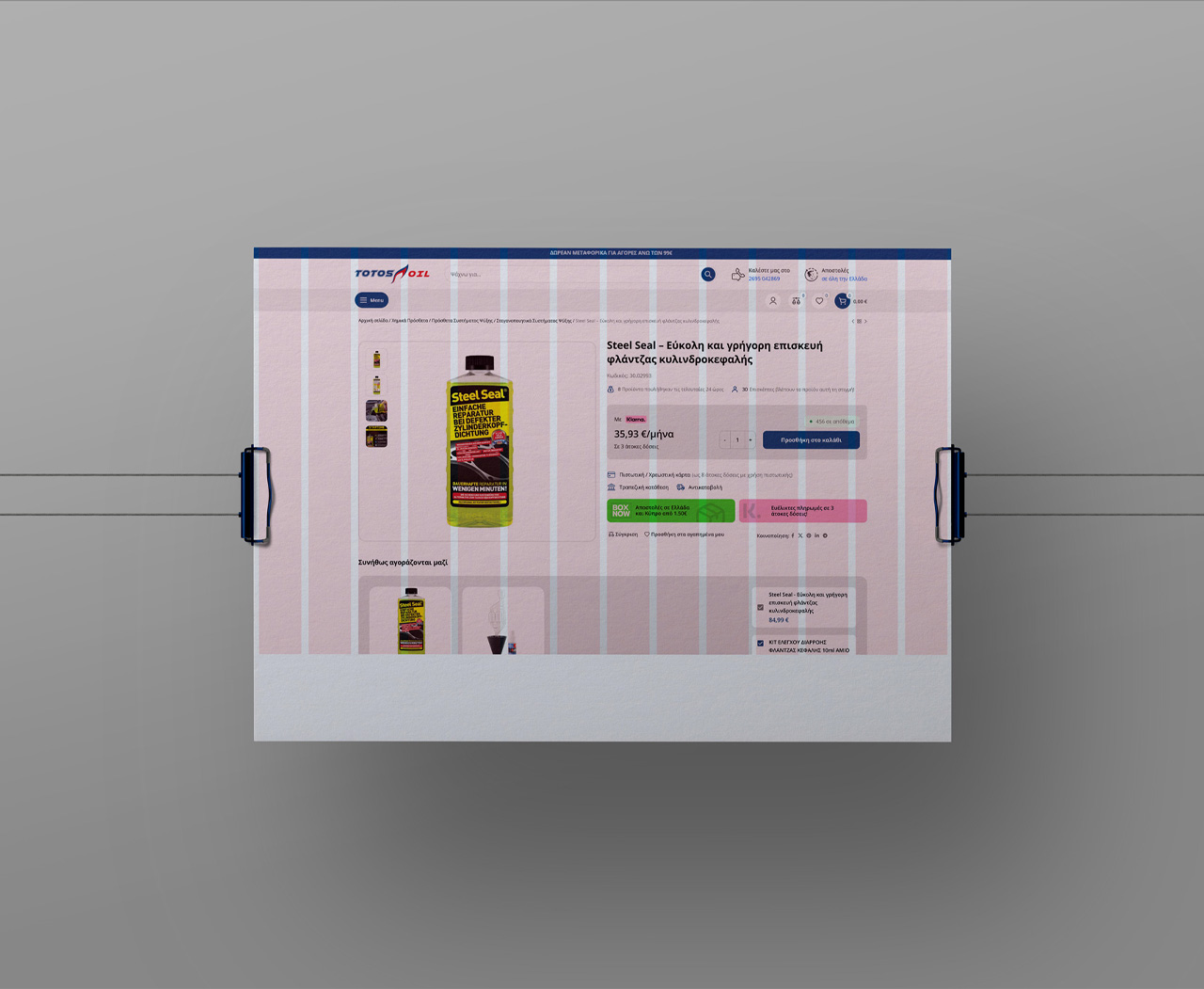 Η Totos Oil, μια δυναμική επιχείρηση στον χώρο των λιπαντικών και αξεσουάρ οχημάτων, διέθετε ένα e-shop το οποίο έχρηζε αισθητικής και λειτουργικής αναβάθμισης για να ανταποκριθεί στις σύγχρονες ανάγκες του ηλεκτρονικού εμπορίου. Η βασική πρόκληση που κλήθηκα να αντιμετωπίσω σχεδιαστικά ήταν ο εκσυγχρονισμός της Αρχικής Σελίδας και η πλήρης αναδιάρθρωση του Product Template (της σελίδας του εκάστοτε προϊόντος). Στόχος ήταν να δημιουργηθεί ένα καθαρό, αξιόπιστο και “conversion-focused” περιβάλλον που θα καθοδηγεί τον επισκέπτη εύκολα και γρήγορα από την αναζήτηση μέχρι το τελικό checkout.